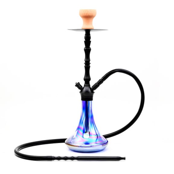 Ναργιλές Atomic 60 εκ , σώμα από βιοπυριτικό γυαλί ηψηλής αντοχής σε σχέδιο αποχρώσεων Diamond Blue με δίσκο 16,5 εκ διάμετρο , ένα σωλήνα και κεραμικό κεφαλής φυσικό χρώμα mockingbird ( αντιανεμικό ) σε ατομικό κουτί